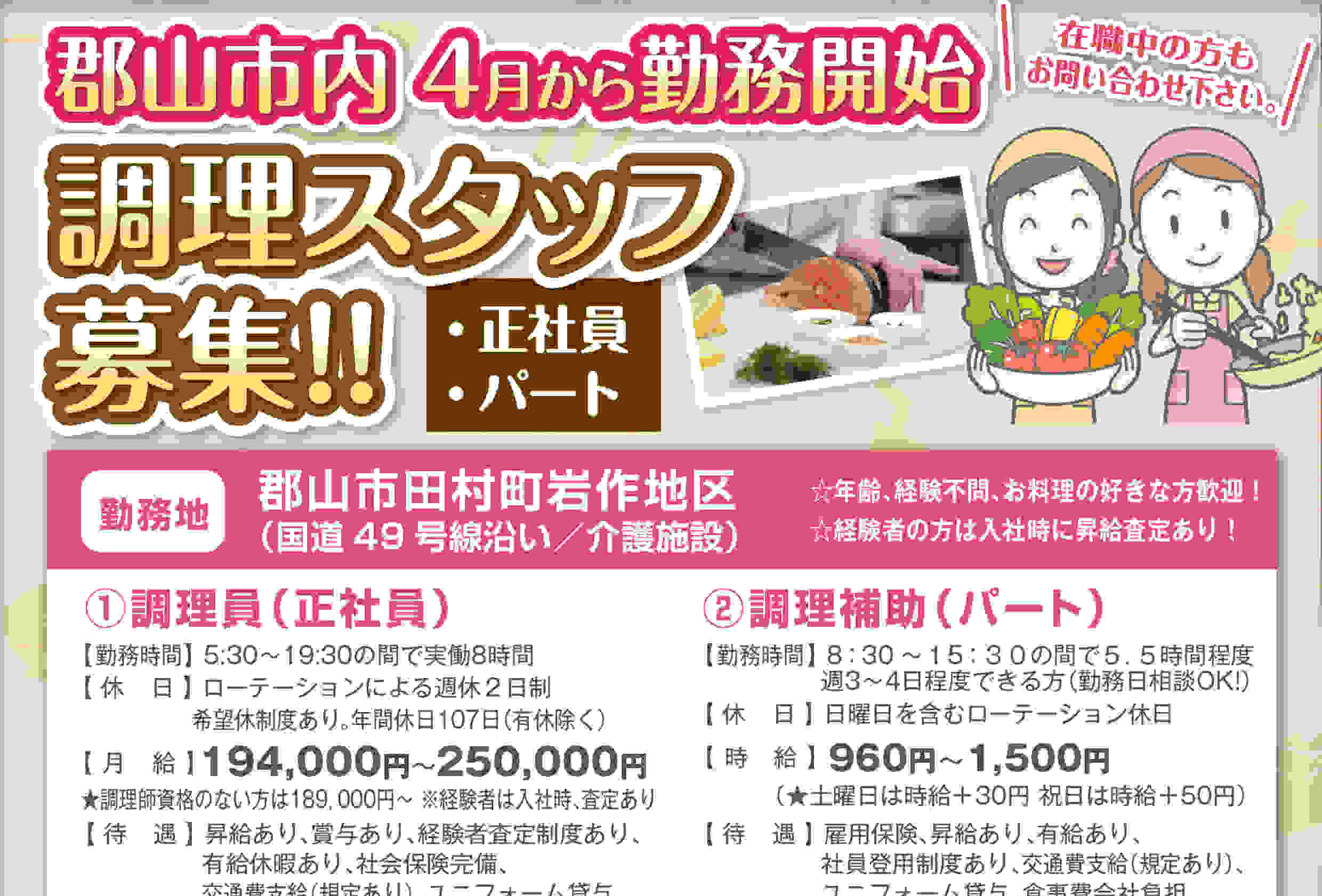 | 事業内容 | 大手事業所・工場・学校・病院等の給食請負業 |