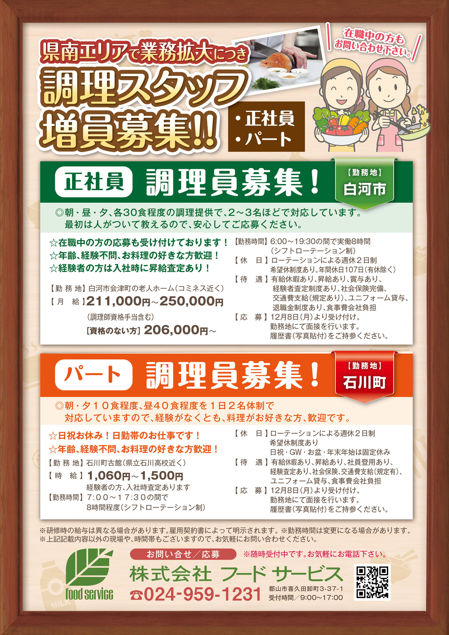 その考えのもと、未経験の方や他業種の方も安心して働いていただけるよう、採用時から「調理員正社員」として勤務していただける雇用形態を設けております。