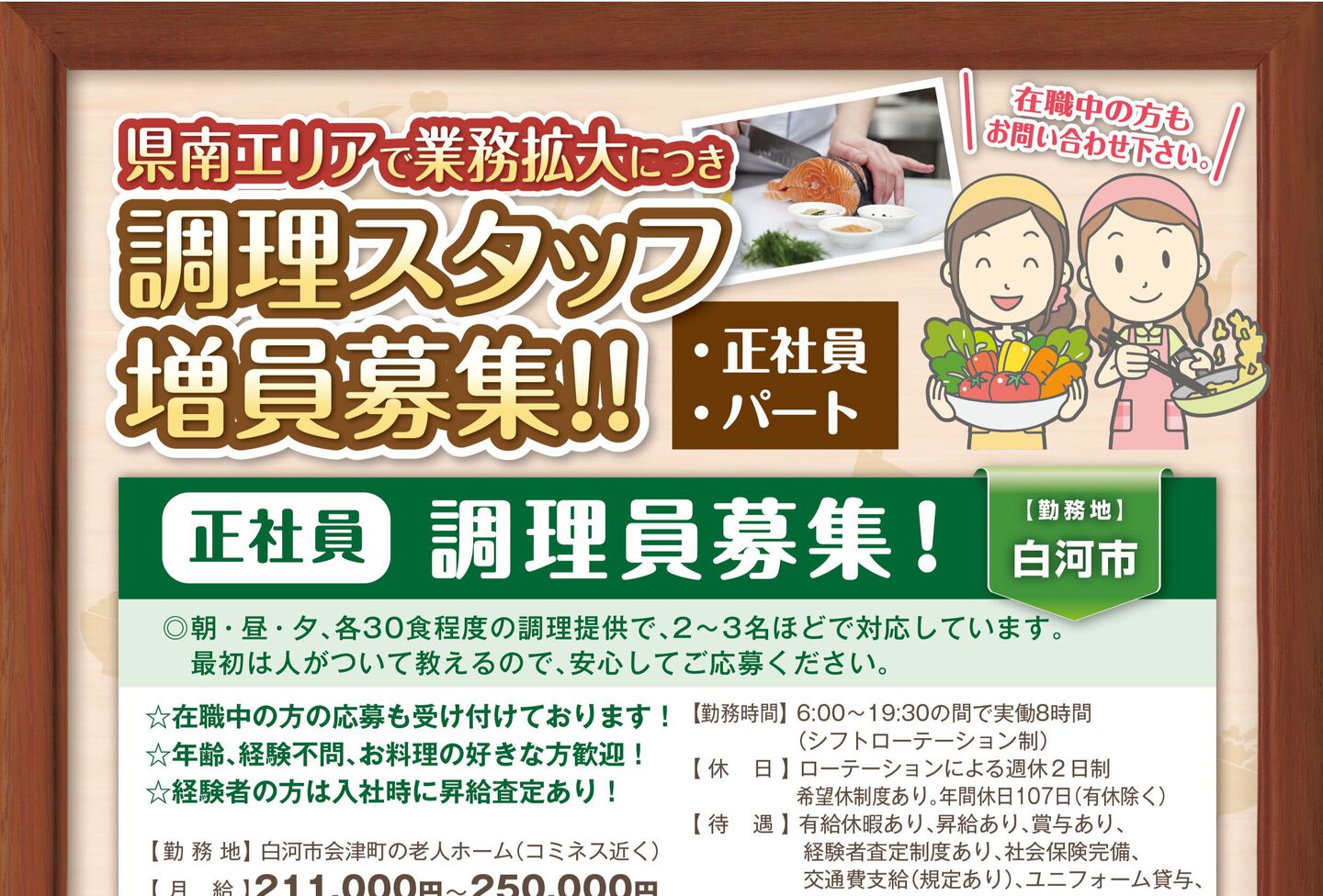 福島県で委託給食業を専門として創業し、まもなく30年目を迎えます。地域の人材を採用し、地域の企業様とつながり、地域のお客様にお食事を提供する。この事の重要性を認識し、皆様と共に歩んで参りたいと考えます。